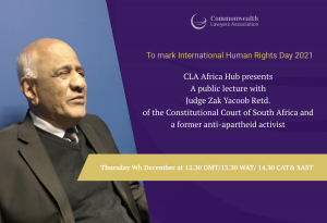 The Commonwealth Lawyers Association Africa Hub Public Lecture : Judge Zak Yacoob Retd. of South Africa celebrates International Human Rights day 2021 on the theme of “Equality”